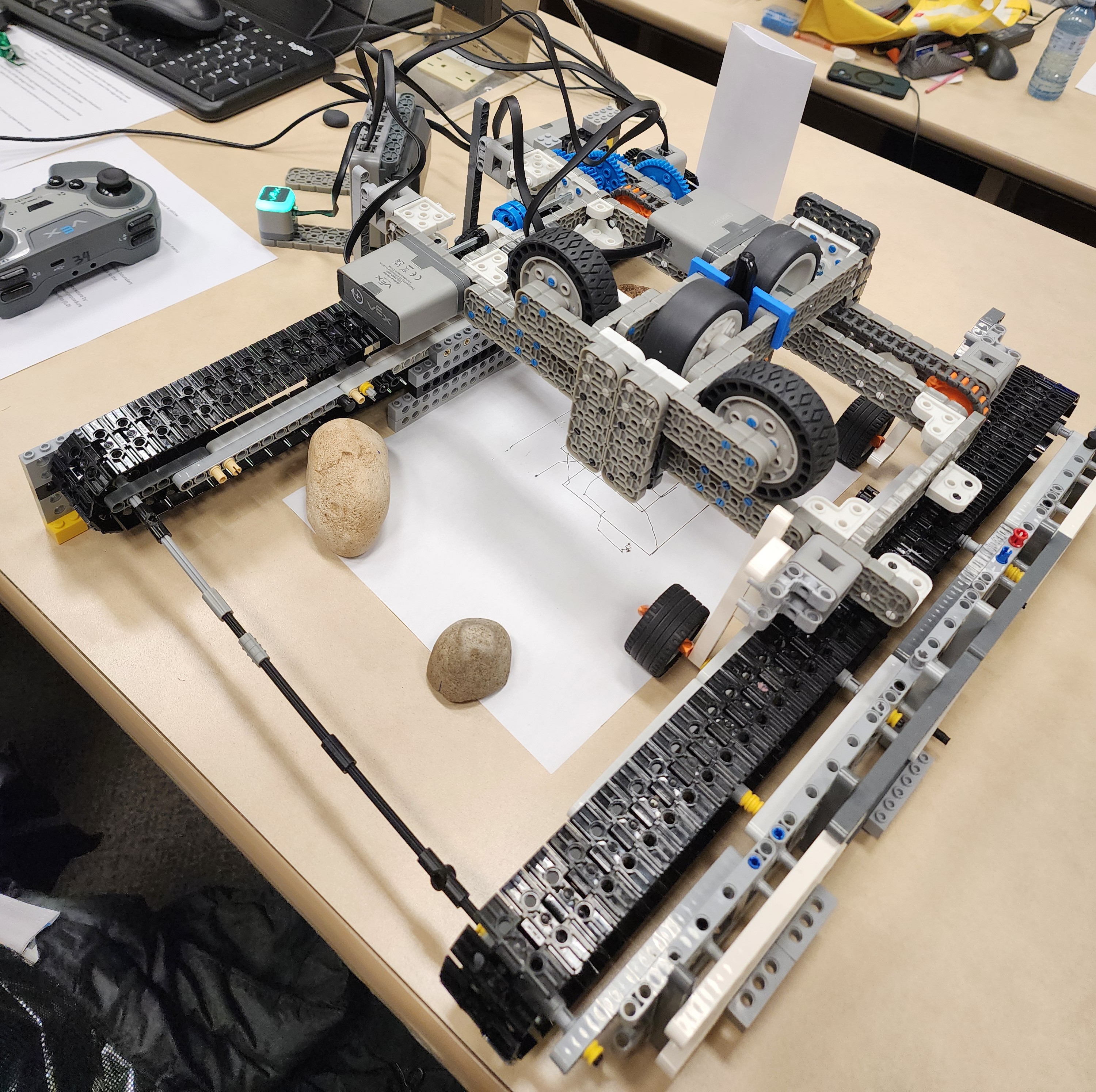The goal was to design and program a VEX-based pen plotter that could draw from coordinate arrays with reliable positioning. That required more than just motion code: the project also depended on calibration behavior, physical stability, and the tooling used to generate the drawing inputs in the first place.